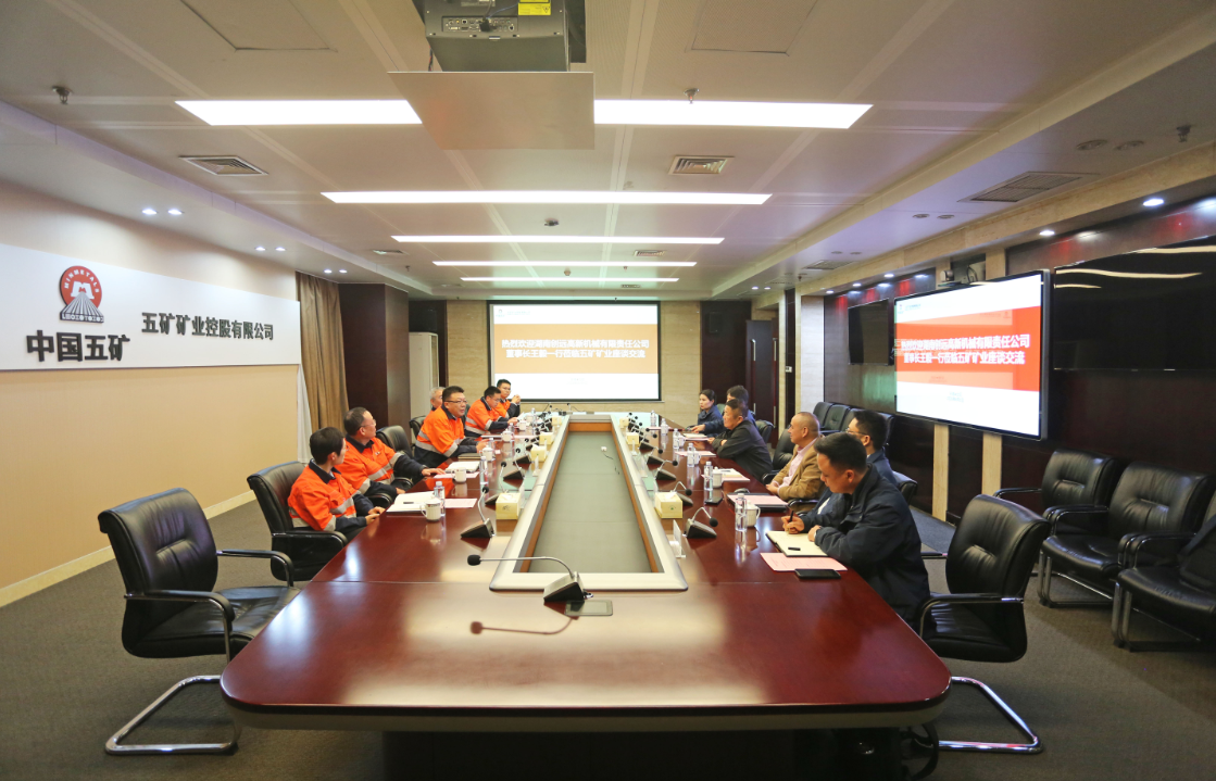 王毅回顾了双方的合作历程,对五矿矿业给予的支持和帮助表示感谢。他表示,经过多年的发展,湖南创远形成了覆盖天井钻机、采矿装备、智能矿山系统化解决方案、工程技术服务咨询等板块的业务格局,希望与五矿矿业进一步拓宽合作领域,为企业智慧矿山建设提供更优质服务,助力五矿矿业高质量发展。
