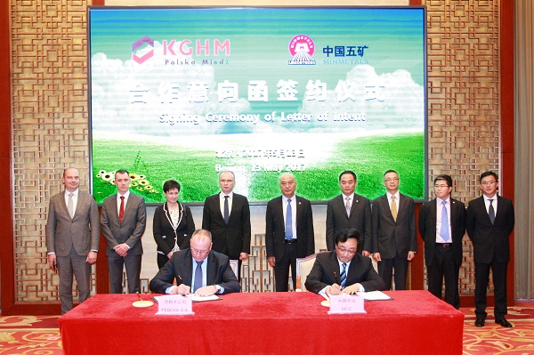 5月13日,中国五矿董事长何文波与前来中国参加“一带一路”国际合作高峰论坛的波兰总理贝娅塔·希德沃、波铜集团董事长拉多斯瓦夫·道马格尔举行会谈,并与道马格尔共同见证了中国中冶同PEBEKA公司签署合作意向函。中国五矿副总经理兼中冶集团总经理张兆祥出席上述活动,并主持签约仪式。