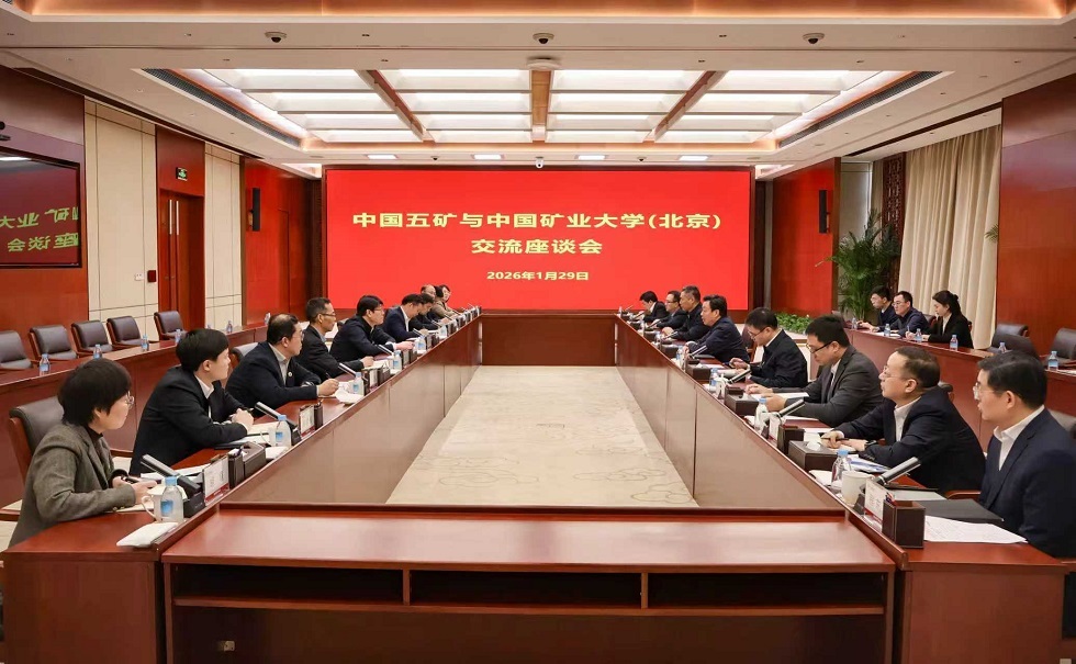 1月29日,中国五矿与中国矿业大学(北京)举行工作会谈。中国五矿党组书记、董事长陈得信,党组副书记、董事、总经理朱可炳与中国矿业大学(北京)党委书记韩尚峰,校长、党委副书记刘波共同出席,双方就进一步加强合作进行交流。中国五矿党组成员、副总经理王兴权,中国矿业大学(北京)党委常委、副校长崔希民、汪文生出席会谈。